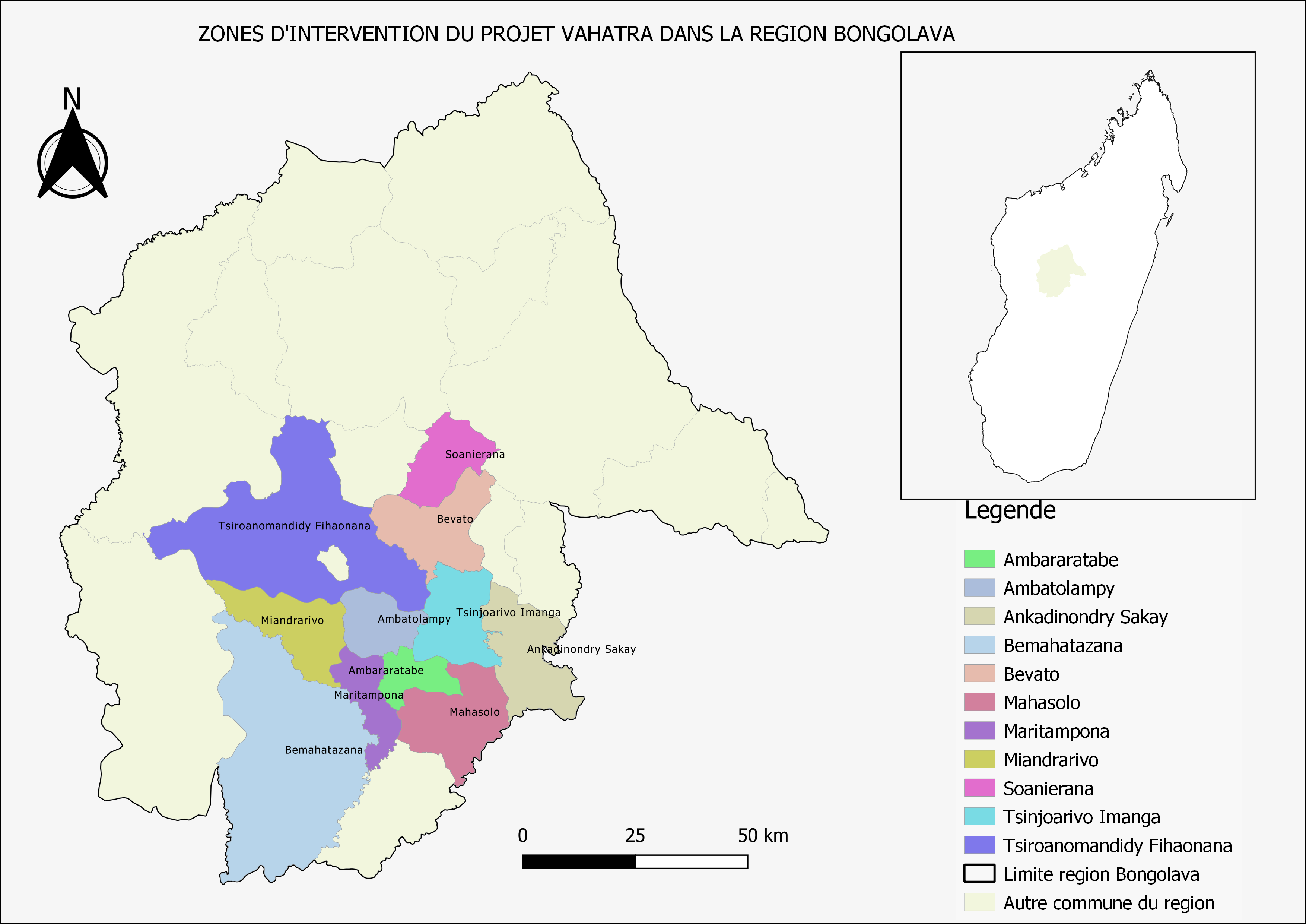 Le projet Vahatra agit dans 81 villages, 45 fokontany, 10 communes de la région Bongolava, Tsiroanomandidy.